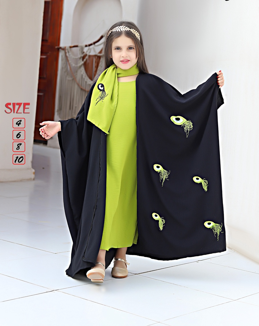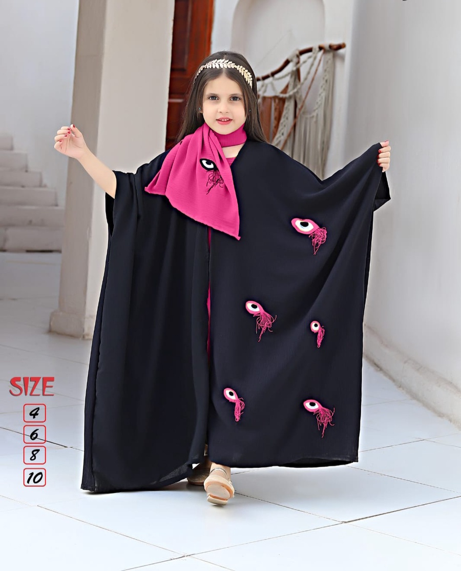 إسدال بناتي أنيق بألوان متناسقة وتصميم واسع يوفر الراحة المثالى لجو رمضان مطرز بتفاصيل راقية وعاليه الجودة ،يمنح طفلتك إطلالة مميزة ومواكبة للموضة.