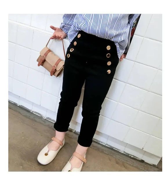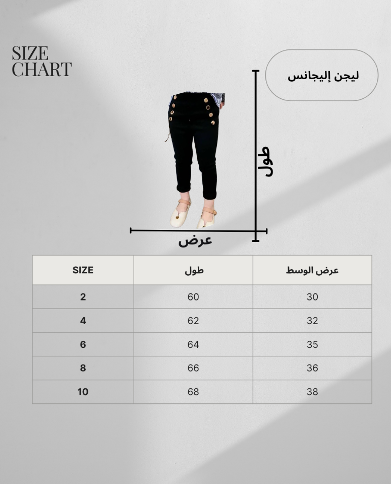 جبنالك البنطلون اللي هيكمّل شياكة أميرتك في كل خروجاتها! 💃 بنطلون شيك بأزرار دهبية ولمسة فخامة، بخامة قطن ليكرا المريحة اللي تخليها تتحرك براحتها طول اليوم بدون إحساس بالتعرق أو الضيق.