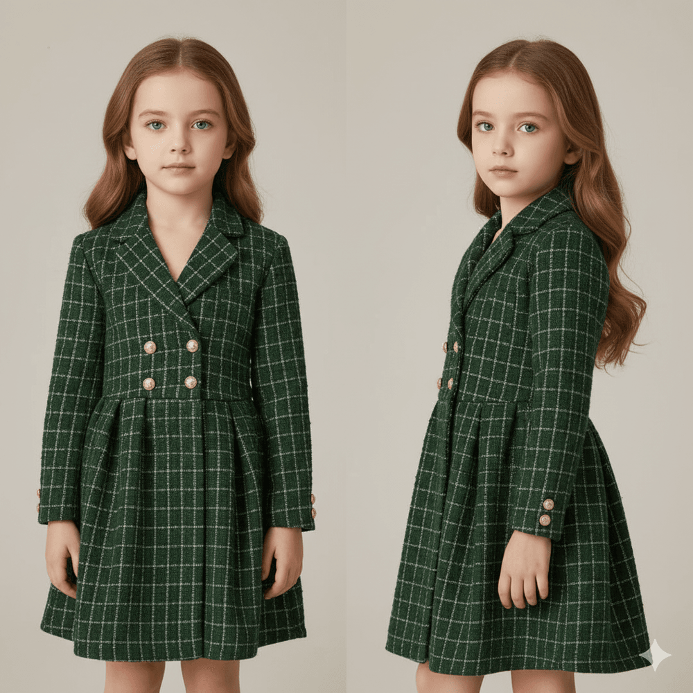 الفستان ده معمول مخصوص علشان الشتاء، صوف تقيل ببطانة داخلية يحافظ على الدفا بدون ما يضايق الطفلة. متوفر بـ 3 ألوان مميزة تناسب كل الأذواق: