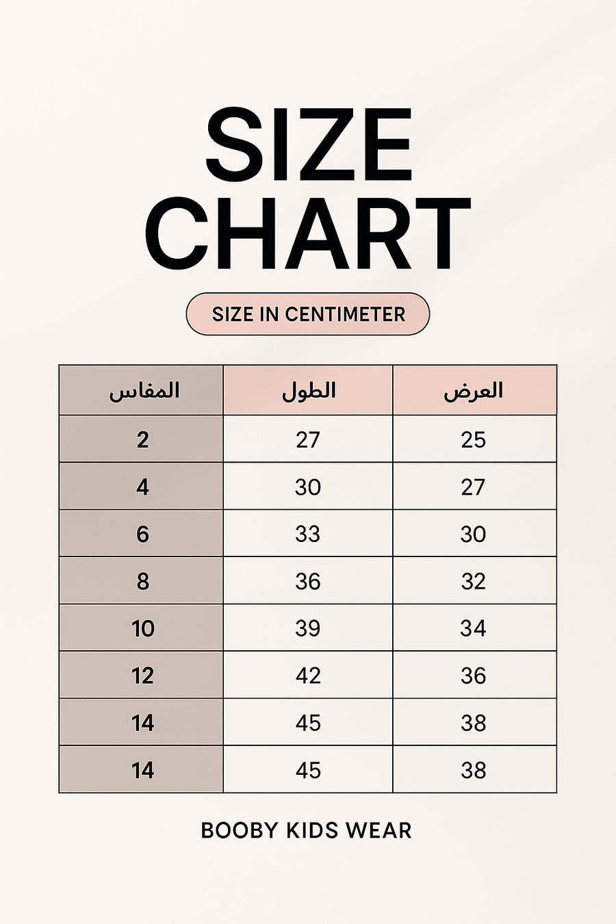 📏 متوفر بمقاسات من 6 شهور لـ 14 سنه