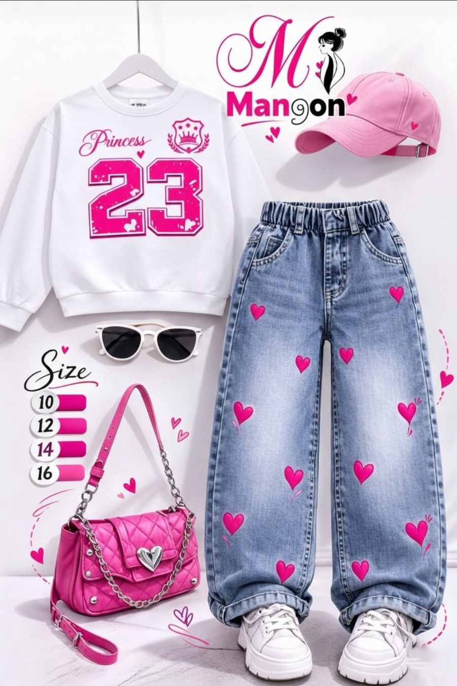 - Trendy Wide Leg Jeans: يكمل اللوك العصري لبناتك.