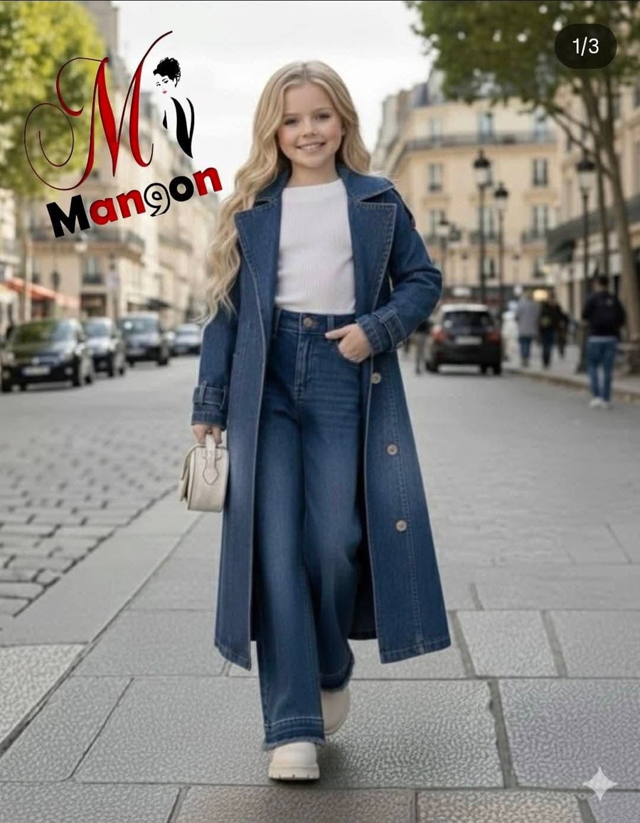 طقم جينز بناتي 3 قطع – ستايل متكامل بخامة مستوردة 👖✨